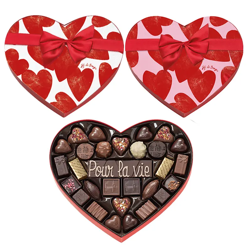 Du chocolat au lait onctueux aux notes fruitées et caramélisées, en passant par le chocolat noir intense et les éclats de noisettes croquants, chaque bouchée est une déclaration d’amour. Sa forme symbolique évoque l’amour et l’affection, donnant le ton pour la douce surprise qui se cache à l’intérieur.