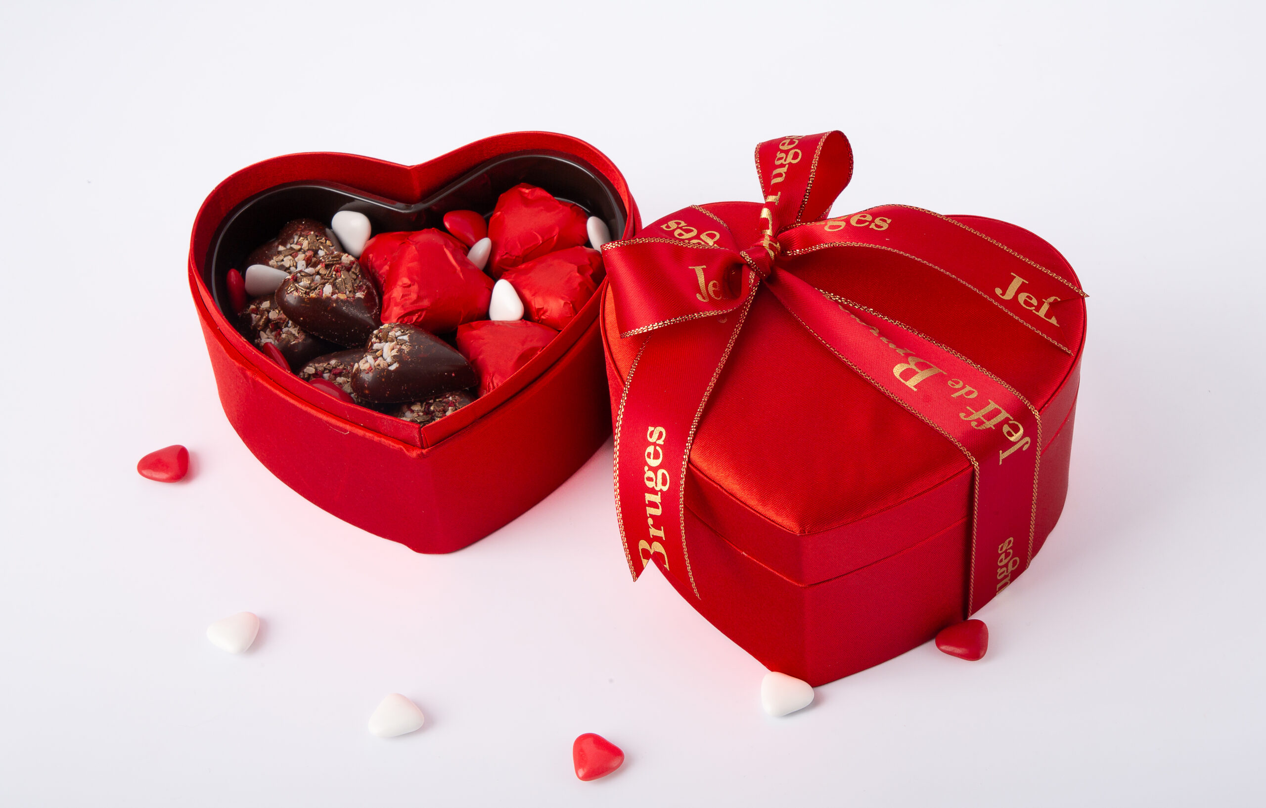 Cœurs éclats et Cœurs JB – chocolat au lait et chocolat noir assortis. Ingrédients : chocolat au lait (sucre, beurre de cacao, masse de cacao (fèves de cacao origine Équateur), LAIT entier en poudre, LAIT écrémé en poudre, émulsifiant : lécithines (SOJA), arôme naturel de vanille), chocolat noir (masse de cacao (fèves de cacao origine Équateur), sucre, matière grasse laitière (LAIT), beurre concentré (LAIT), beurre de cacao, émulsifiant : lécithines (SOJA), arôme naturel de vanille), pâte de NOISETTES, sucre, NOISETTES torréfiées et concassées, paillettes chocolat bronze (sucre, pâte de cacao, LAIT écrémé en poudre, agents d’enrobage : shellac et gomme arabique, émulsifiant : lécithine, colorants : oxyde et hydroxyde de fer), pâte de cacao, crumble (farine de BLÉ, sucre, beurre (LAIT), sel), crème (LAIT), humectant : glycérol, fruit de la passion, LAIT entier en poudre, beurre de karité, matière grasse de noix de coco, sirop de glucose, huile de tournesol, beurre concentré (LAIT), granules de meringue (sucre, blanc d’OEUF, amidon de maïs), pépites à la framboise (sucre, jus de framboise à base de concentré, dextrose, jus de citron à base de concentré, gélifiant : pectine, arôme naturel, colorant : concentré de carotte noire), AMANDES, LAIT écrémé, sirop de sucre inverti, groseilles lyophilisées, framboise déshydratée et lyophilisée, arômes naturels de vanille, de violette et de miel), miel, fleurs de violette odorante, sucre candi, NOISETTES, sirop de sucre, cacao maigre en poudre, cannelle, émulsifiant : lécithines (SOJA), concentré de pomme, concentré de groseilles noires, concentré de citron, concentré de radis, extrait de spiruline, agent d’enrobage : gomme arabique, correcteur d’acidité : acide citrique. Peuvent contenir des traces d’autres céréales contenant du gluten, d’œufs, de graines de sésame, d’autres fruits à coque et d’arachides.