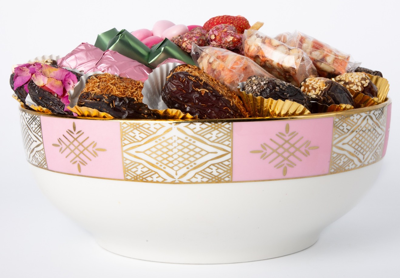 Bonbons de chocolats assortis. Ingrédients : chocolat noir (masse de cacao (fèves de cacao origine Équateur), sucre, beurre concentré (LAIT), beurre de cacao, émulsifiant : lécithines (SOJA), arôme naturel de vanille), sucre, chocolat au lait (sucre, LAIT entier en poudre, masse de cacao (fèves de cacao origine Équateur), beurre de cacao, émulsifiant : lécithines (SOJA), arôme naturel de vanille), chocolat blanc (sucre, beurre de cacao, LAIT entier en poudre, émulsifiant : lécithines (SOJA), arôme naturel de vanille), NOISETTES, pâte de cacao, beurre de cacao, LAIT entier en poudre, beurre de karité, massepain (sucre, AMANDES, sirop de glucose, stabilisant : glycérol de colza, PISTACHES, stabilisant : sorbitols, arôme naturel de pistache), huile de noix de coco, AMANDES, beurre (LAIT), crème (LAIT), huile de tournesol, éclats de crêpes dentelle (farine de BLÉ, sucre, beurre concentré (LAIT), LACTOSE (LAIT), protéines de LAIT, sel, farine d’ORGE malté, poudre à lever : carbonates de sodium), caramel (sirop de glucose, LAIT concentré sucré (LAIT écrémé, sucre), huile de noix de coco, eau, stabilisant : glycérol de colza, émulsifiants : mono- et diglycérides d’acides gras et lécithines (SOJA), sel, arôme naturel), sirop de glucose, stabilisant : glycérol de colza, meringue (sucre, beurre de cacao, amidon de BLÉ, huile de noix de coco, protéines de LAIT, poudres à lever : carbonates de sodium et carbonates d’ammonium, blanc d’OEUF), beurre concentré (LAIT), poudre de cacao dégraissé, stabilisant : sorbitols, confiture de cerises (sirop de glucose et fructose, cerises, sucre, épaississant : pectine, correcteur d’acidité : acide citrique), LAIT écrémé, eau, dextrose, arômes et arômes naturels, poudre de cacao, sirop de sucre inverti, cerises, riz soufflé (farine de riz, sucre, sel, beurre de cacao), émulsifiant : lécithines (SOJA), purée de fruit de la passion (extrait de fruits de la passion, sirop de sucre), purée de pommes, biscuit au beurre (farine de BLÉ, sucre, beurre (LAIT), OEUF, amidon de BLÉ, sel, poudre à lever : carbonates d’ammonium), fèves de cacao, nougat (sucre, sirop de, AMANDES, miel, beurre de cacao, amidon de pomme de terre, blanc d’OEUF, arôme naturel de vanille), noix de coco, sirop de sucre candi, stabilisant : sorbitols, farine de BLÉ, huile de maïs, café, amandes d’abricot, graines de SÉSAME, OEUF, raisins secs, sirop de glucose-fructose, spéculoos (farine de BLÉ, sucre, huile de colza, sirop de sucre candi, beurre concentré (LAIT), poudre à lever : bicarbonates de sodium, sel, cannelle), écorces d’oranges confites (écorces d’oranges, sucre, sirop de glucose-fructose, correcteur d’acidité : acide citrique), NOIX de pécan, thé Earl Grey, blanc d’OEUF, extrait sec de citron, jus de pulpe de cacao concentré, pulpe de cacao, sirop de sucre, amidon de BLÉ, sucre caramélisé, épices (cannelle, clou de girofle), sel de Guérande, mangue, framboises, coriandre, LAIT écrémé en poudre, amidon de riz, sel, correcteurs d’acidité : acide citrique et acide malique, colorant : caramel d’ammonium, extrait de paprika, aliments colorants (concentrés de spiruline, de pomme, de groseille, de radis et caroténoïdes), citron, jus de citron vert concentré, jus de sureau, citron yuzu, gingembre, amidon de tapioca, poudres à lever : carbonates d’ammonium et carbonates de sodium, piment d’Espelette, arômes naturels (cacao, orange, vanille, framboise, yuzu), extrait naturel de vanille Bourbon, matière grasse laitière anhydre (LAIT), huile de citron vert, émulsifiant : lécithine de tournesol, colorant : curcumine, vanille en poudre. Les recettes peuvent contenir des traces d’arachides et d’autres fruits à coque.